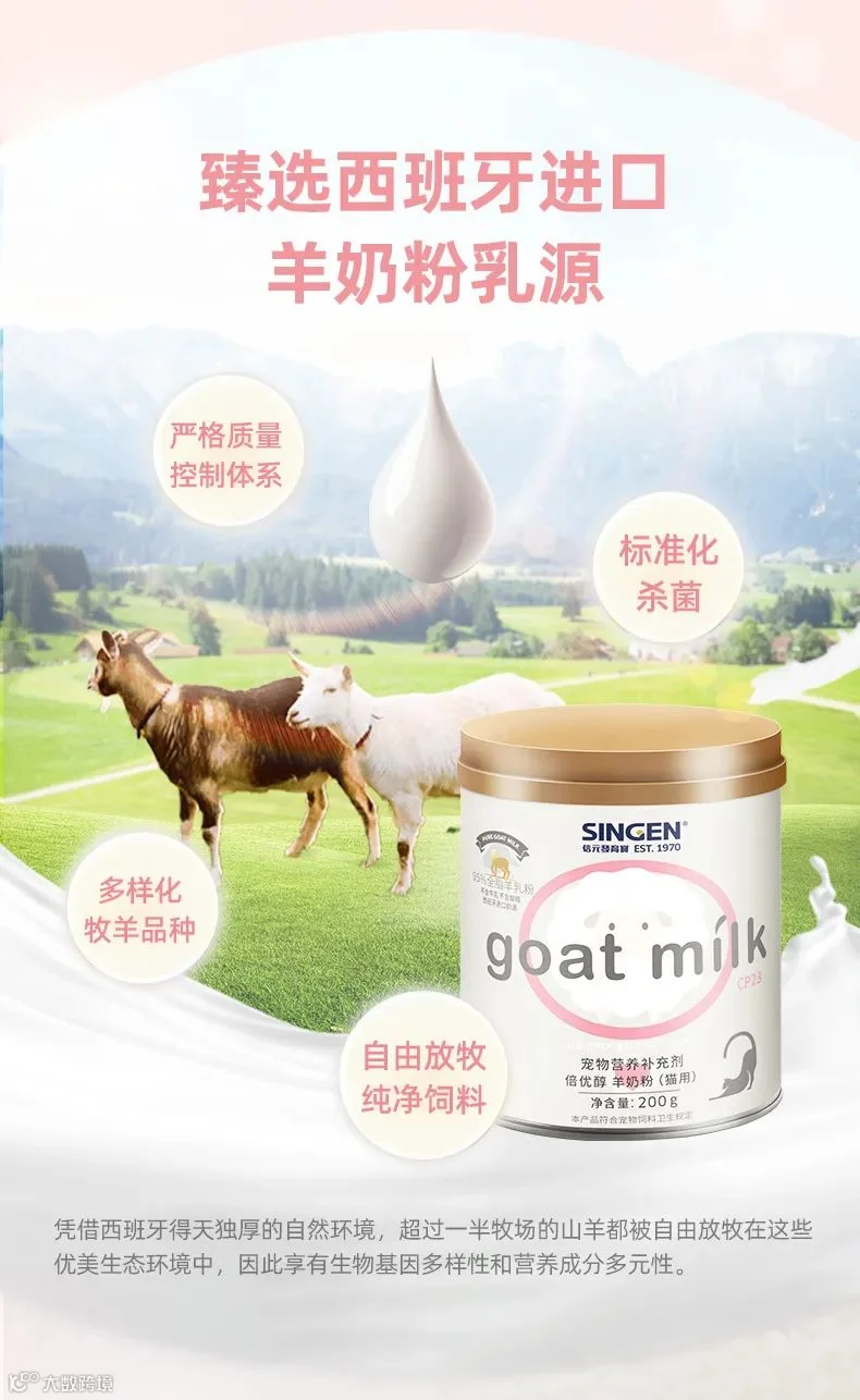 作为历史悠久的宠物食品品牌,信元发育宝坚持以“尊重生命,专注宠物健康维护”为核心理念。其最新推出的宠物羊奶粉中羊乳粉含量高达95%,富含中链脂肪酸、低聚糖等多种营养成分,可增强免疫力,促进健康发展。