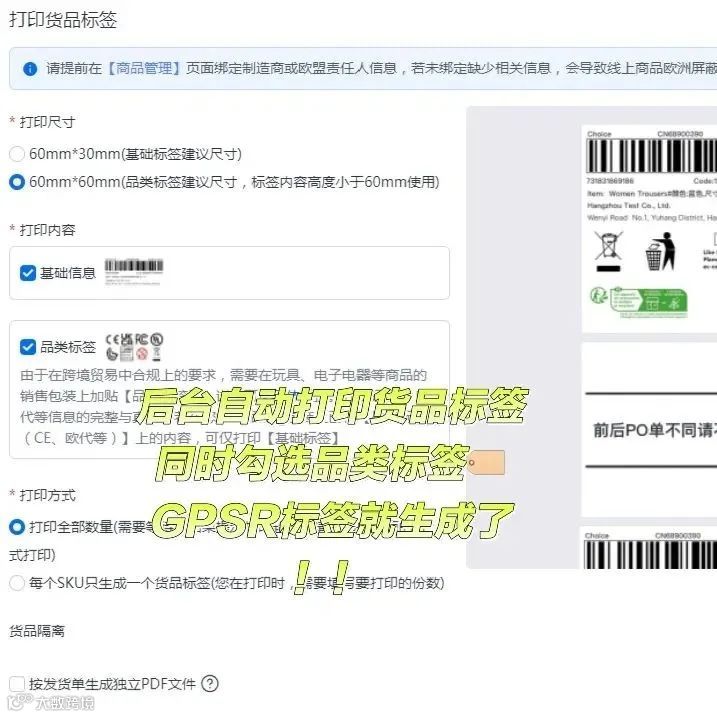 4、重新印制商品标签,确保标签符合GPSR要求。