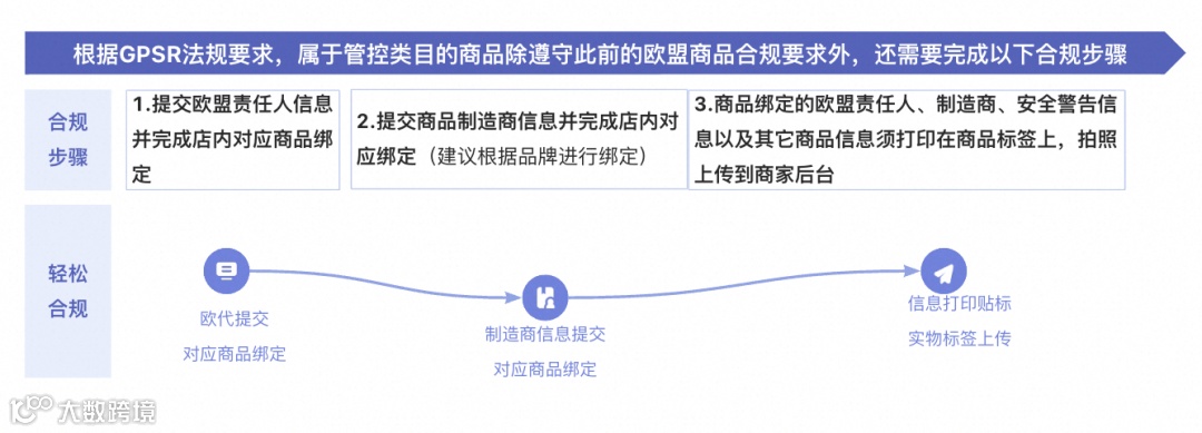 总之,要符合GPSR要求,卖家的商品必须申请欧代,并且为商品贴上合规标签,然后上传到平台。考虑到要完成这三步操作,可能需要4-6个月的过渡期。