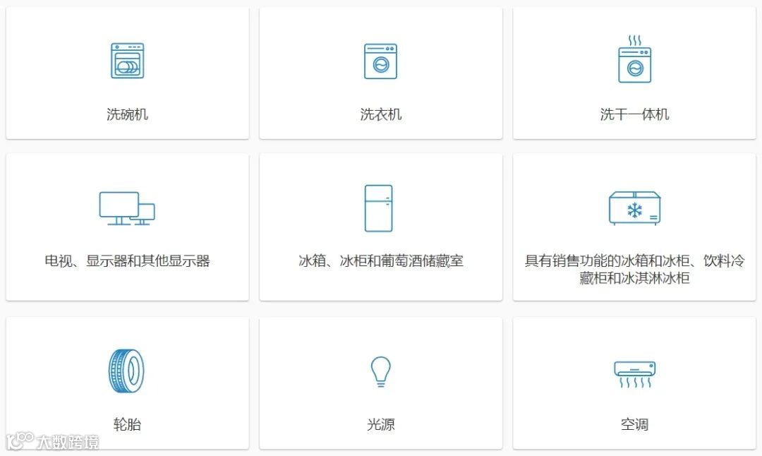 欧盟能效标签涵盖产品范围广,建议卖家先看大类再看小类,能效标签的产品大类可登录欧盟能源标签产品注册网查询