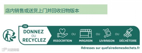 对于以货到付款的玩具或DIY和园艺工具产品,卖家可以优先选择以下带“三个象形图”的【标准版本】/【送货上门并回收旧物版本】表示捐赠给慈善机构、交付时回收或送往废弃物处理中心。
