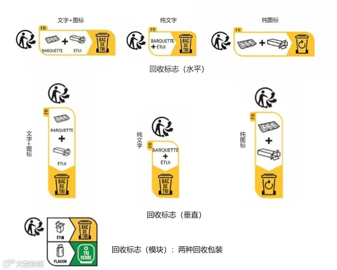 注意文本一定要用法语。注意是印刷包装的可回收部分,不包含产品。