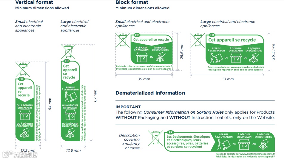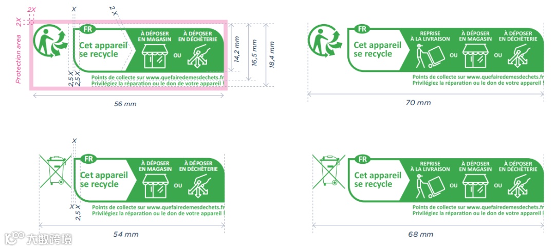 如果产品不只是在法国销售,则必须加上FR以表示适用于法国,区别其他国家回收要求。