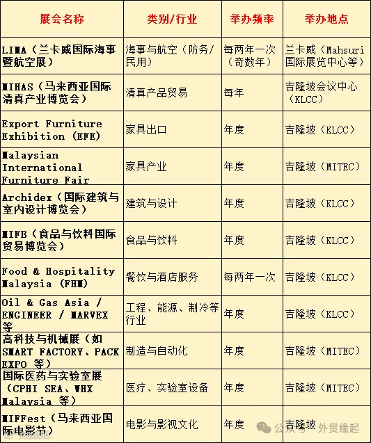 以下是马来西亚2026年主要的一些国际性行业展会: