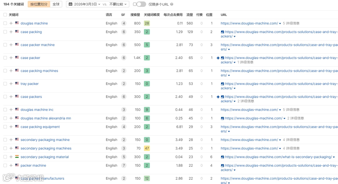 Douglas Machine重点布局包装设备及行业相关关键词,既覆盖高流量词,也深耕长尾词。其策略并非单纯追求流量规模,而是围绕客户真实搜索场景,进行内容延展,通过技术文章与行业资源页面解答问题。