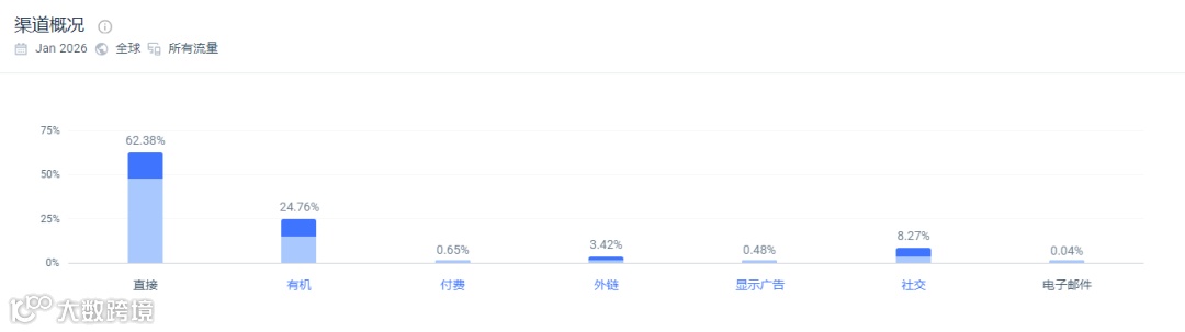 根据similarweb数据显示,Douglas Machine官网的流量来自于直接访问流量(62.38%)、自然搜索流量(24.76%)、社交媒体(8.27%)。从结构上看,高比例直接访问说明品牌心智已建立,稳定的自然流量,则意味着内容布局有效覆盖了行业需求。