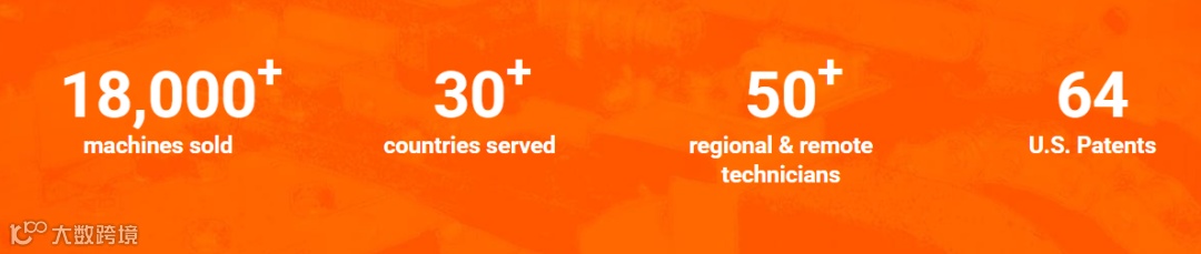 在高额采购决策中,客户首先会问:这家公司是否可靠?是否有足够经验?为此,Douglas Machine在官网清晰展示“18000+台机器已售出”“服务30+国家”“500+安装案例”等量化数据,并在产品详情页呈现具体性能指标。