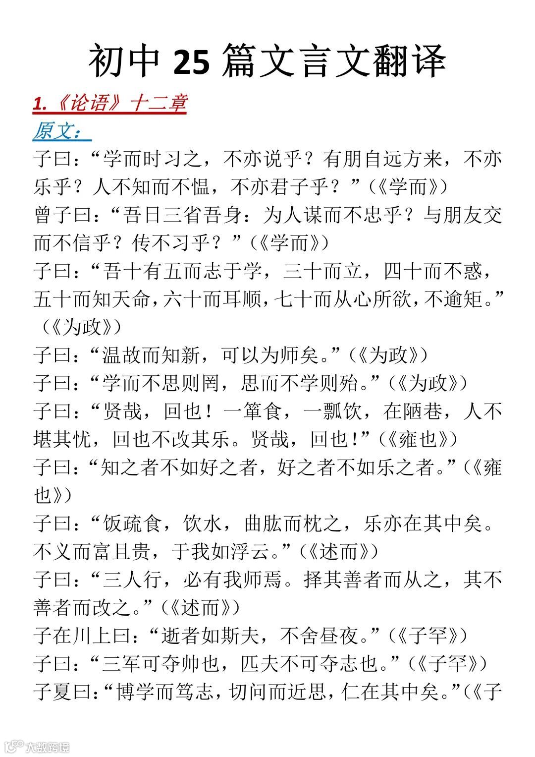 初中25篇文言文翻译,背下来