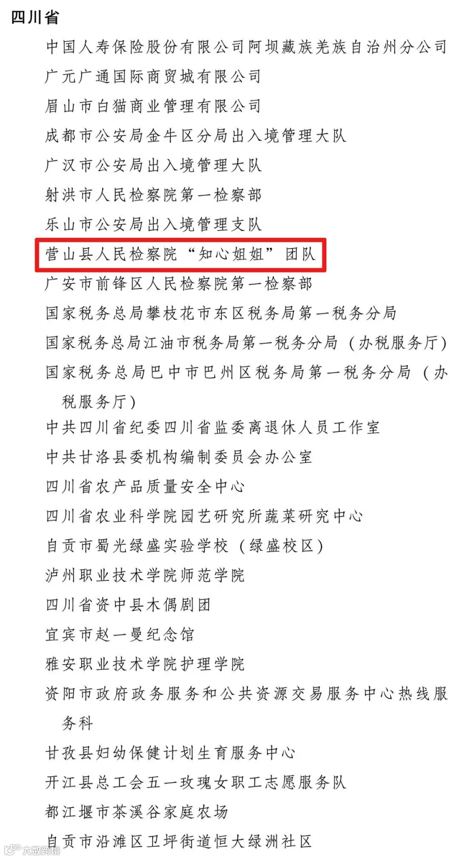 为表彰先进、树立榜样, 充分发挥先进典型和模范人物示范作用, 全国妇联决定, 授予兰臻等9人全国三八红旗手标兵称号, 授予阮祥燕等598人全国三八红旗手称号, 授予中国人民抗日战争纪念馆社会教育部等400个单位全国三八红旗集体称号, 授予首都医科大学附属北京同仁医院耳鼻咽喉头颈外科等 600 个单位全国巾帼文明岗称号。其中,南充市嘉陵区之江小学荣获“全国三八红旗集体”称号,南充市营山县人民检察院“知心姐姐”团队荣获“全国巾帼文明岗”称号。