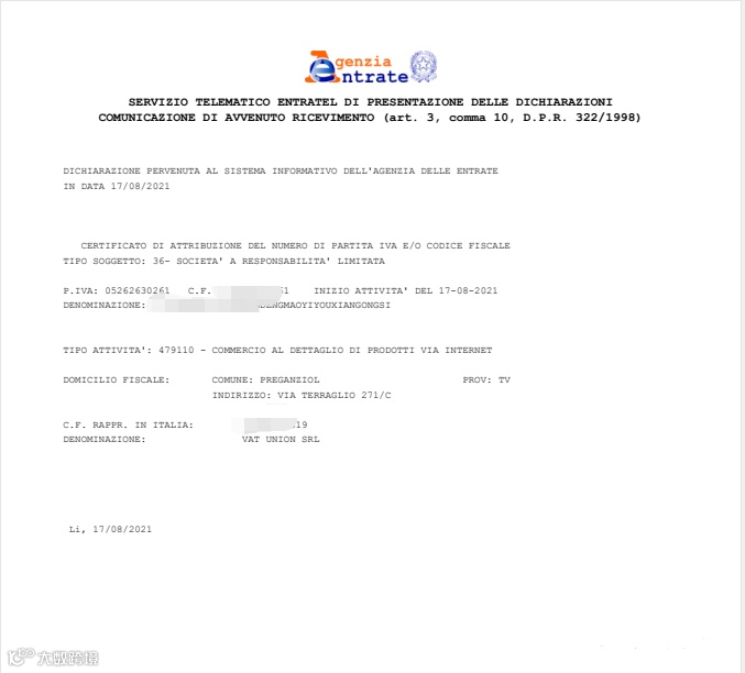 这包括注册意大利增值税,遵守增值税规则以及完成意大利增值税常规申报表和其他声明的义务。