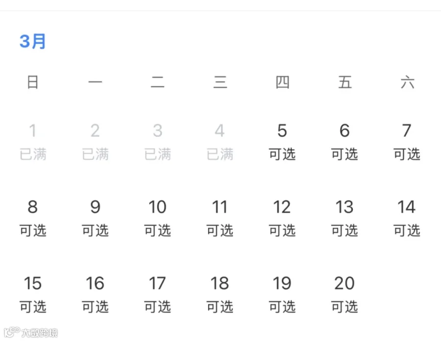 3月1日当天预约已满