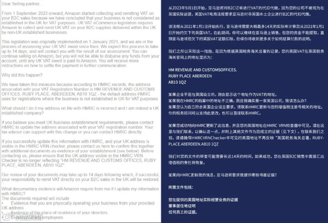 (英国增值税电子商务立法要求亚马逊针对非英国企业在英国境内交付的B2C供应品收取并代缴英国增值税,此立法是从2021年1月1日开始施行)