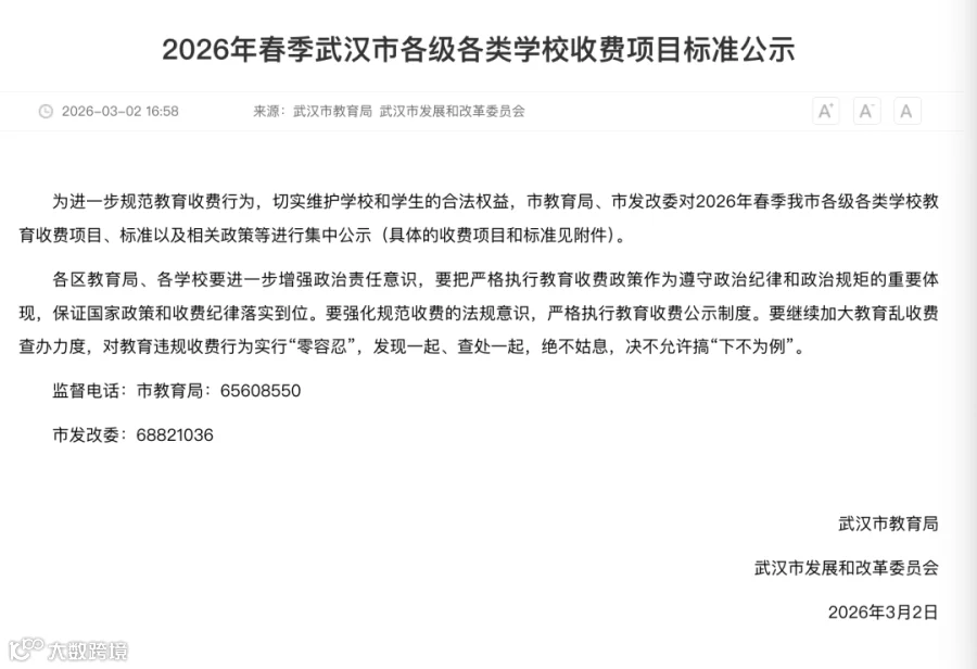 为进一步规范教育收费行为,切实维护学校和学生的合法权益,市教育局、市发改委对2026年春季我市各级各类学校教育收费项目、标准以及相关政策等进行集中公示(具体的收费项目和标准见附件)。