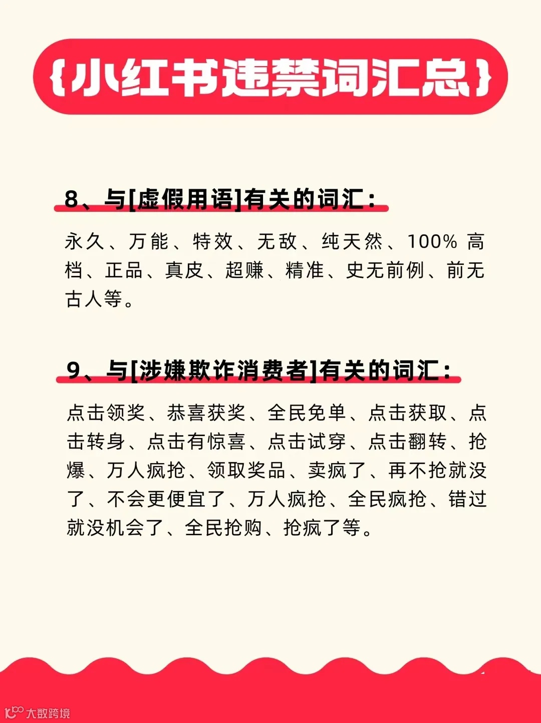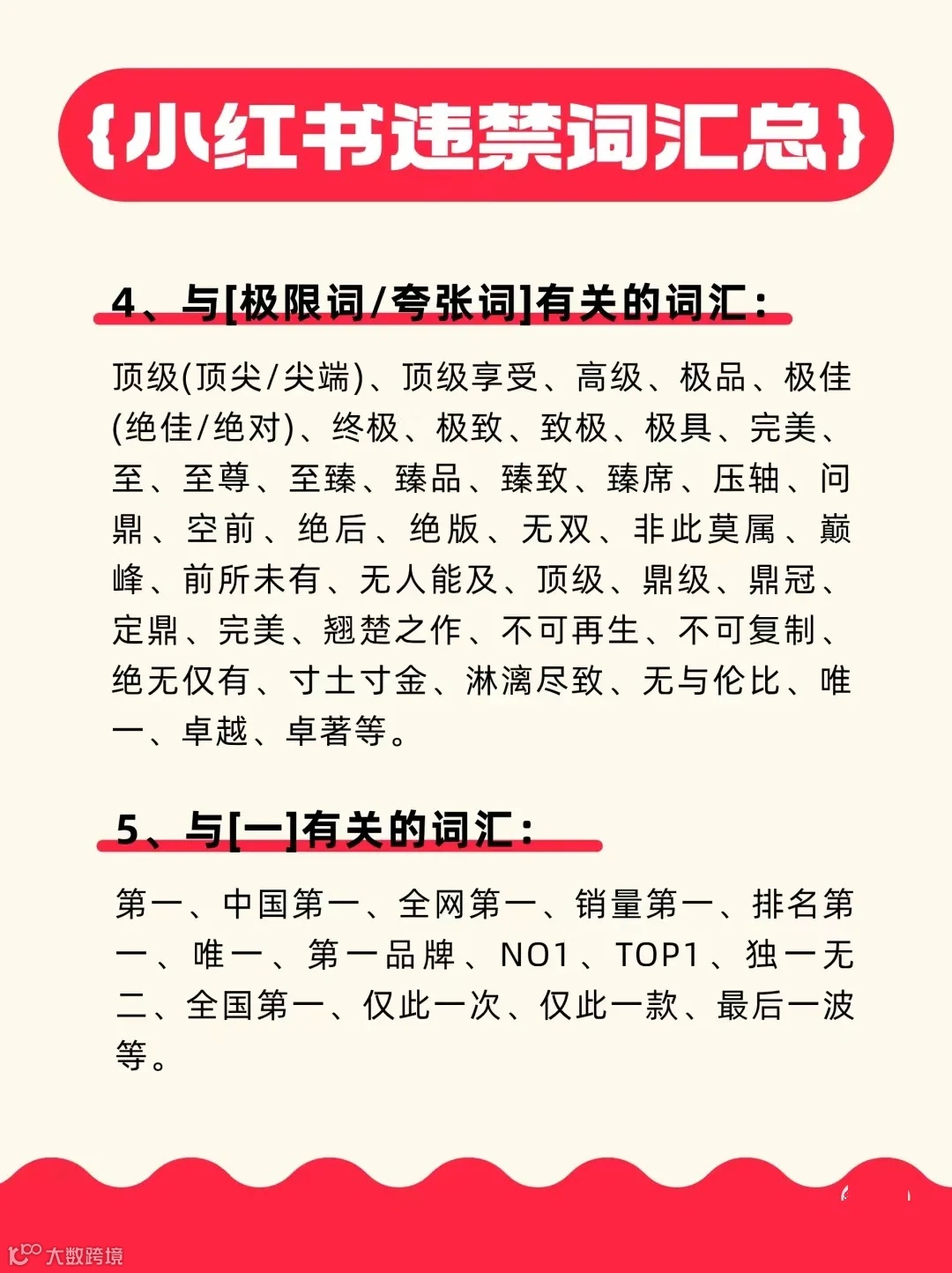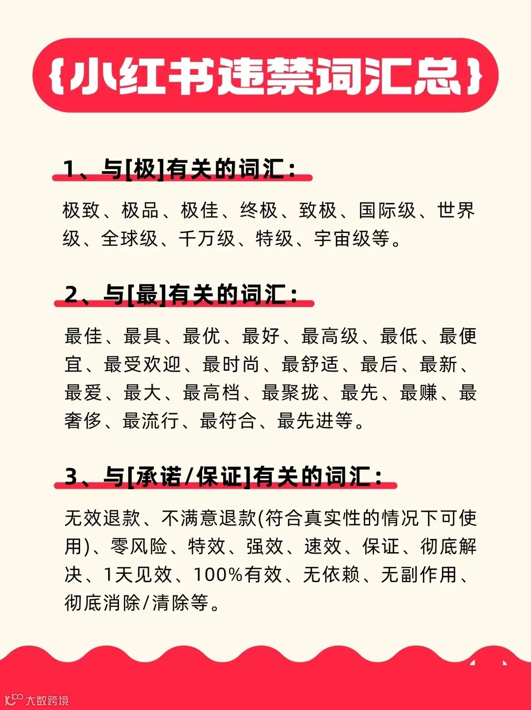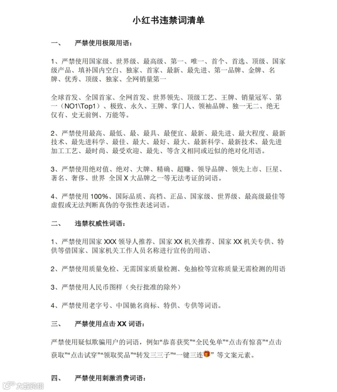 小红书平台针对不同类目设定了严格的违禁词标准,请作者特别注意以下关键词: