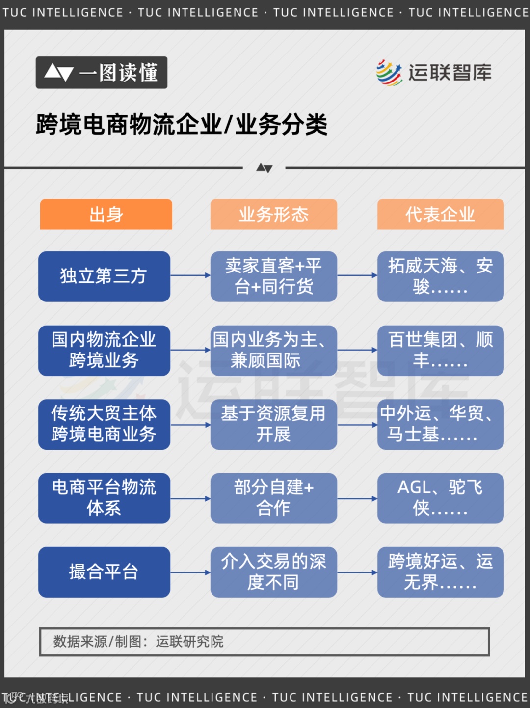 不同的跨境电商物流企业凭借自身业务属性和生态站位,各自扮演着不同的角色。