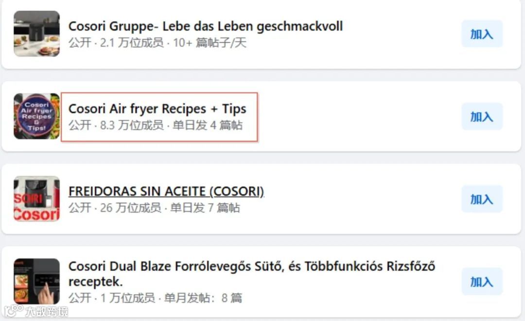 COSORI并没有过多利用产品力作为社区的主要凝聚力,而是用“菜谱”俘虏用户的心。在Facebook,该品牌拥有多个群组。值得注意的是仅菜谱一栏就拥有超8万用户参与。