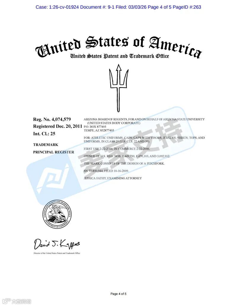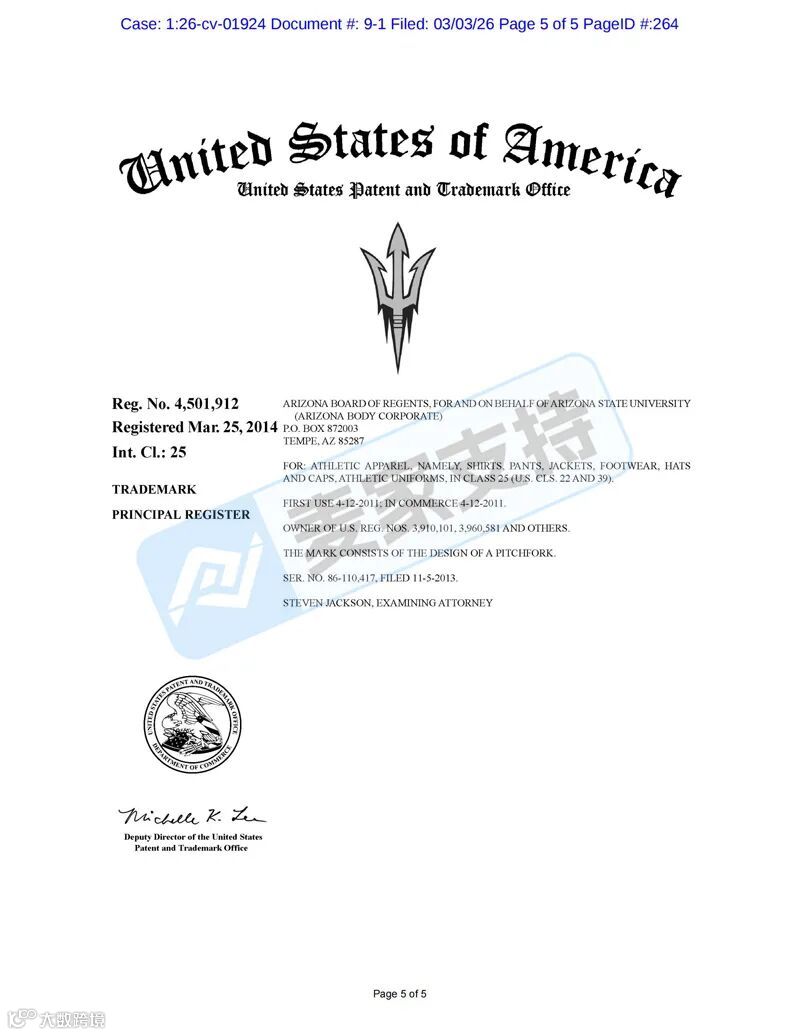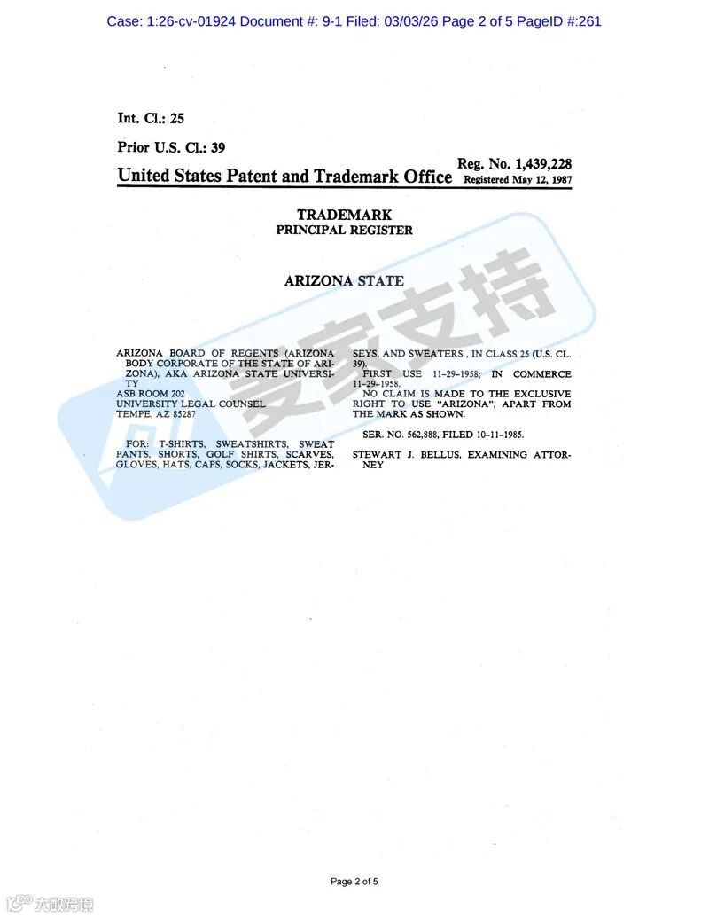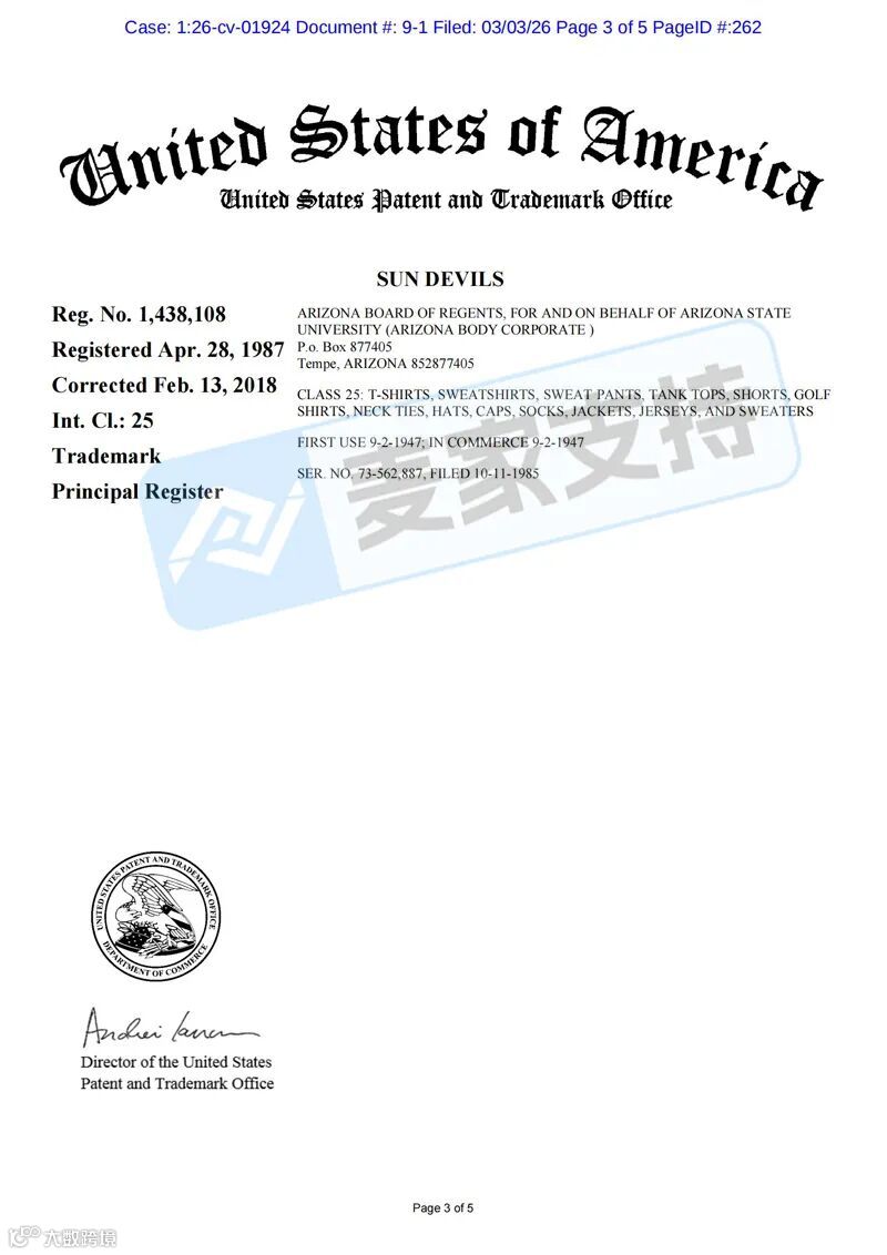 另外,Arizona Board of Regents 在美国共注册有224个商标,包括图形商标以及文字商标等,涵盖马克杯、服饰、教育、钥匙扣以及文具印刷品等多个类目,未经授权使用,均会面临TRO冻结风险。目前两起案件处于前期立案阶段,暂未获批TRO临时限制令,跨境卖家需尽快排查并下架高危产品,做好进一步应对措施!
