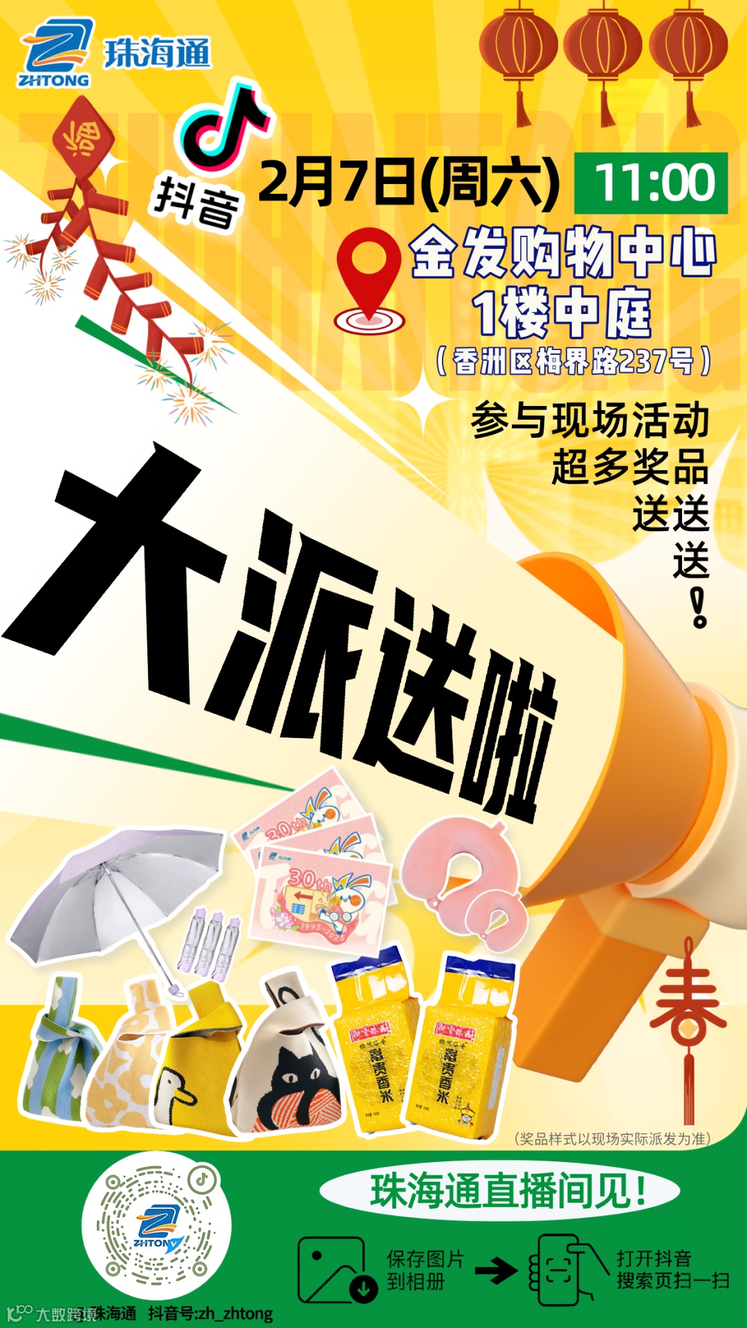 现场关注「珠海通」+「通仔有料到」抖音号,就能获得一张精美明信片,还可以加盖一枚马年限定印章,把新年好运带回家!