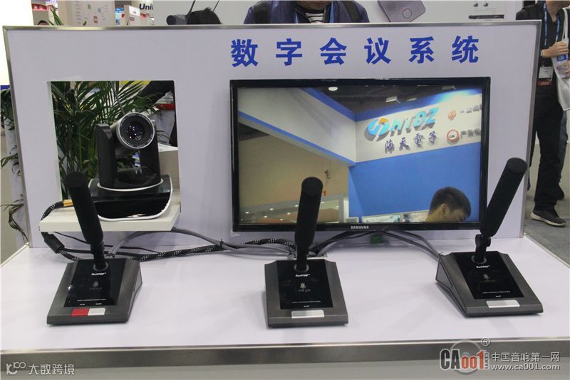 海天电子重点展示数字会议系统、数字阵列会议系统、数字音频处理器、无纸化会议系统及2.4G无线会议系统。