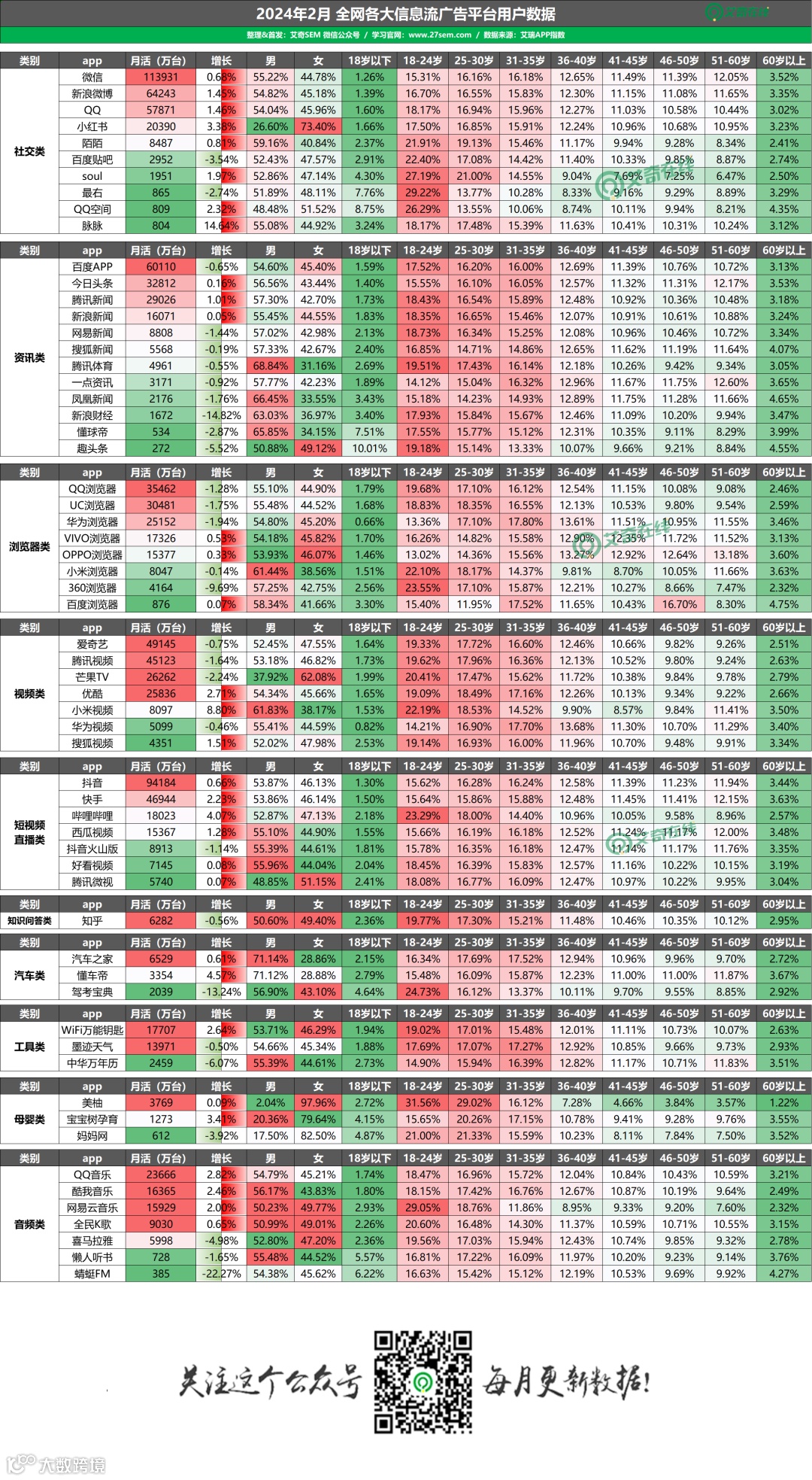 61个主流信息流平台月活数据与人群画像分析
