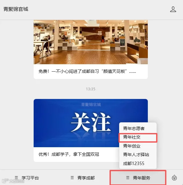 第一步:关注“青聚锦官城”微信公众号