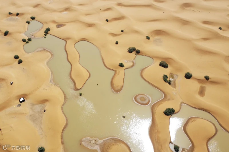 暴雨过后,部分沙漠地区可见水从沙中涌出。美国国家航空航天局的卫星图像显示,大量水涌入已经干涸50年的伊里基湖。在邻国阿尔及利亚,迈拉赫盐沼也难得地被雨水填满。