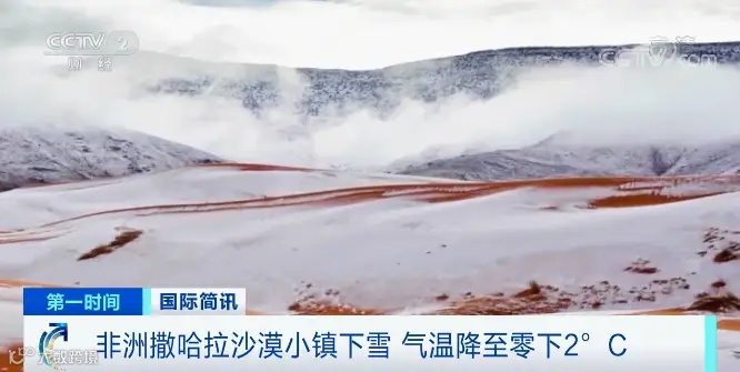 除了洪水的罕见侵袭外,撒哈拉沙漠此前还出现过降雪,当地村民都看得目瞪口呆:当地时间2016年12月19日,非洲阿尔及利亚Ain Sefra小镇,迎来第二次降雪,不同于上一次只持续了半小时的降雪,这一次大雪持续了一整天,而上一次撒哈拉降雪还要追溯到1979年2月。到了2022年1月,阿尔及利亚的这一小镇又遭遇寒流侵袭,金黄的沙丘被白色的冰雪部分覆盖后,形成罕见的美丽图案。