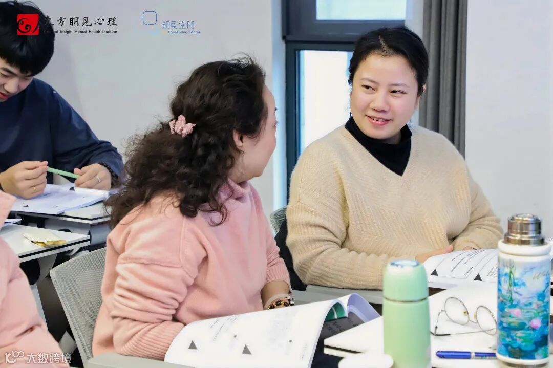 了解了人性观之后,第二天上午的课程转入对“病理”观的探讨。闫老师借助电影《青春变形记》中美玲的成长困境,生动呈现了个体从心理失调到心理适应不良的演变过程,帮助学员在以人为中心疗法的视角下理解个体“生病”的内在逻辑。课程后的晚间练习,闫老师给学员们布置了“观察人”的任务,学员们从“成长与发展D-生活环境E-内因与机制M-问题与症状P”的逻辑框架分析一个有“困扰”的人,从而更深入地理解自我概念与机体经验如何从协调一致逐渐走向分离与冲突。学员们在晚间练习先独立分析,然后组成小组对各自的思考展开探讨。晚间练习结束后各组整理了未解决的疑问,次日闫老师统一为学员解答,激发学员进一步的思考。