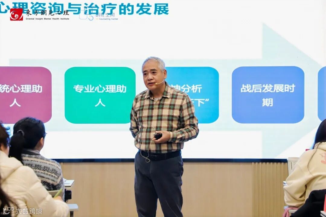 第一天上午,江老师以“来处与去处”为主线,讲授以人为中心疗法的理论来源与发展方向。在“来处”部分,他从心理咨询与治疗的发展史切入,梳理主要流派的演进脉络,最终聚焦于罗杰斯及其创立的以人为中心疗法,回应了该理论“从何而来”的问题。在“去处”部分,他从人性观、人格发展、治疗论等理论视角,阐释以人为中心疗法与中国文化的内在契合,引导学员开启以人为中心疗法在中国本土如何发展的思考。