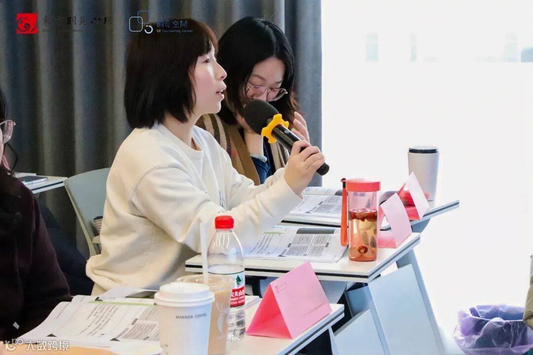 学员C:现场实操让我看到不急于介入,允许一朵鲜花慢慢绽放的过程。同时老师和工作人员在授课过程中的言行和态度也活现了人本,带来了很好的体验!