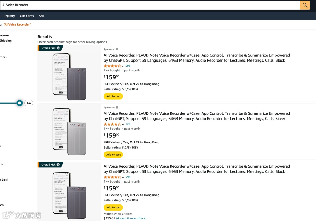 坊间传闻Plaud Note的出货量超过10万台,销售额超过了1亿美元。这并不是空穴来风,打开亚马逊搜索AI Voice Recorder,你会发现几乎没有竞品能和Plaud掰手腕。