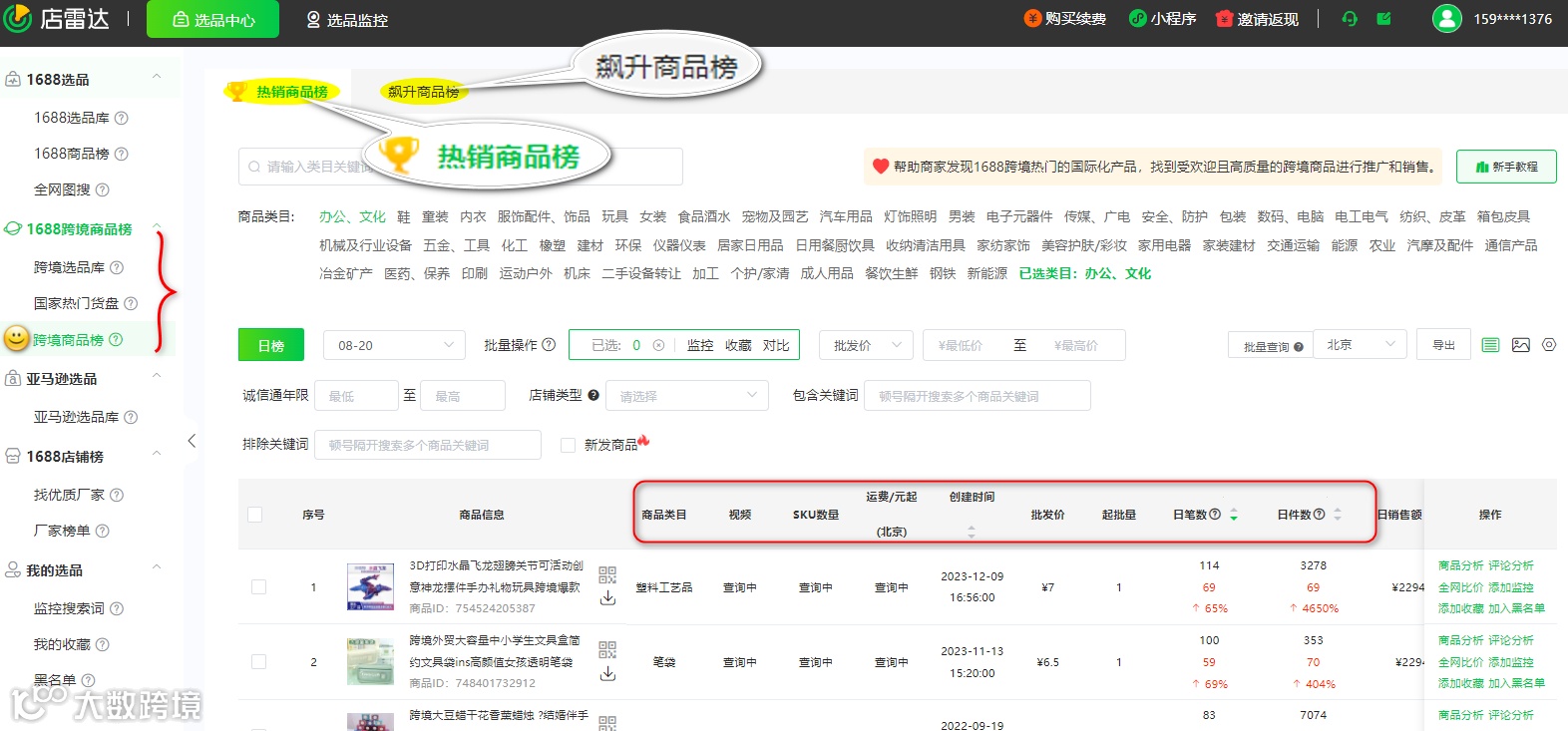 如果你的商品能够顺应平台的潮流,最近那一段时间正好在推一些雨季产品,同时这个商品具备第一、第二点条件,用来提报活动又能带动店铺其他商品关联捆绑销售,这样的效果非常利好的。可以去店雷达看看跨境市场上现在热销榜和飙升榜商品数据,辅助自己参考选品。