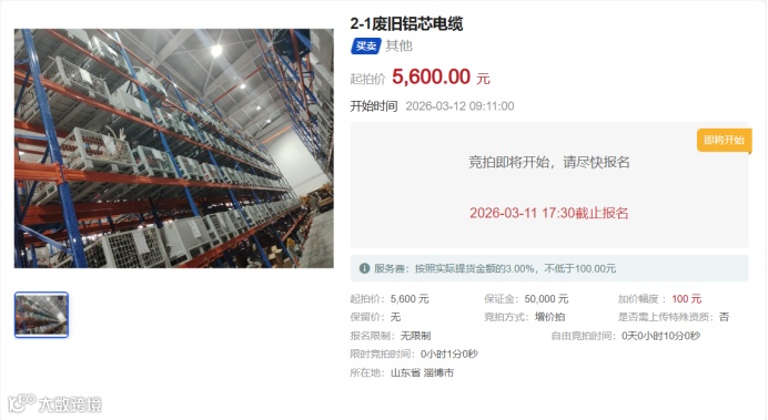 2.竞拍保证金截止时间:2026年3月11日17:30(以竞拍保证金审核通过为准)