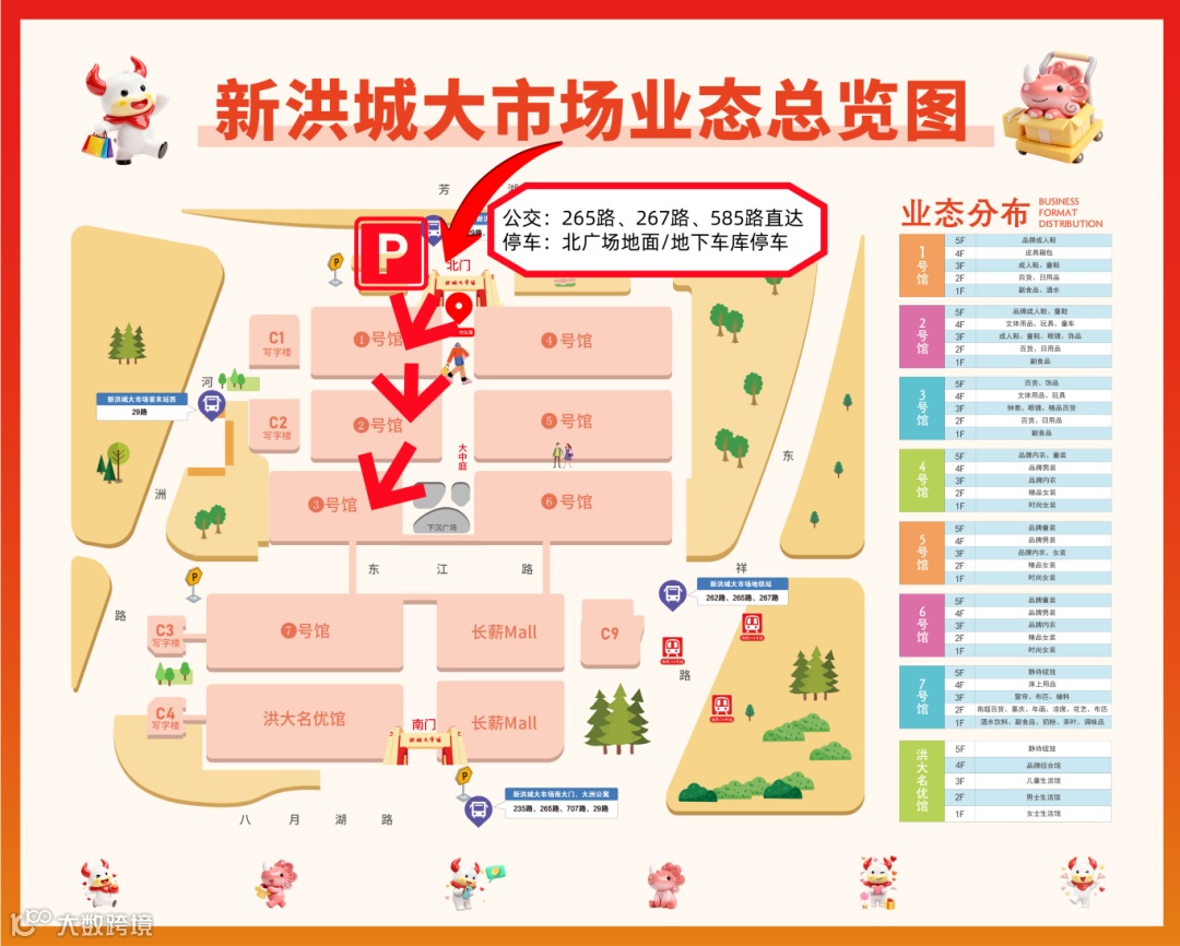 1F副食零嘴喜糖,3F成人鞋、童鞋,带娃买完玩具顺便配鞋,再到1号馆4F买书包行李箱,一路采购不走弯路