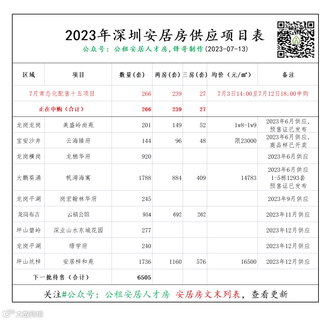 实时获取深圳公租房、安居房、人才房消息!