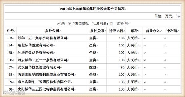 2019年上半年,际华集团实现营业收入为100.74亿元,销售职业装占比17.45%,职业鞋靴占比12.89%,皮革皮鞋占比8.34%,纺织印染占比8.71%,防护装具占比9.01%,贸易及其他业务占比43.60%。同期,公司实现利润总额0.78亿元,同比降低76.40%,归属于上市公司股东的净利润0.18亿元,同比降低92.30%,其中,扣除非经常性损益的净利润-0.97亿元,同比降低197.24%;实现基本每股收益0.004元,同比降低92.59%。