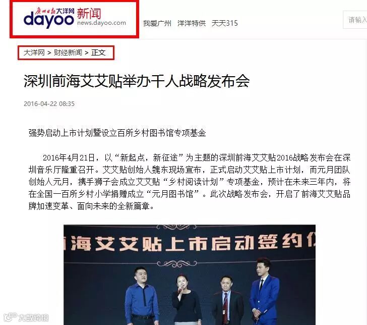 4月21日,艾艾贴战略发布会完美落幕!翌日,数十家新闻网站发布了大会的相关报道,其中更包括凤凰网、今日头条、光明网、中国网等知名媒体网站。艾艾贴影响力早已辐射全国,每一次企业活动均产生巨大媒体效应,作为一名“艾人”,感到无比骄傲!