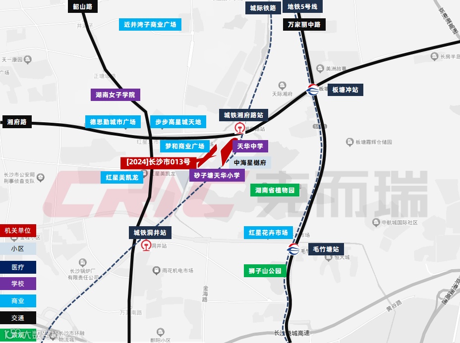 交通上,宗地距离地铁5号线板塘冲站约1.2公里,靠近城铁湘府路站以及主干道湘府路,交通出行较为方便;