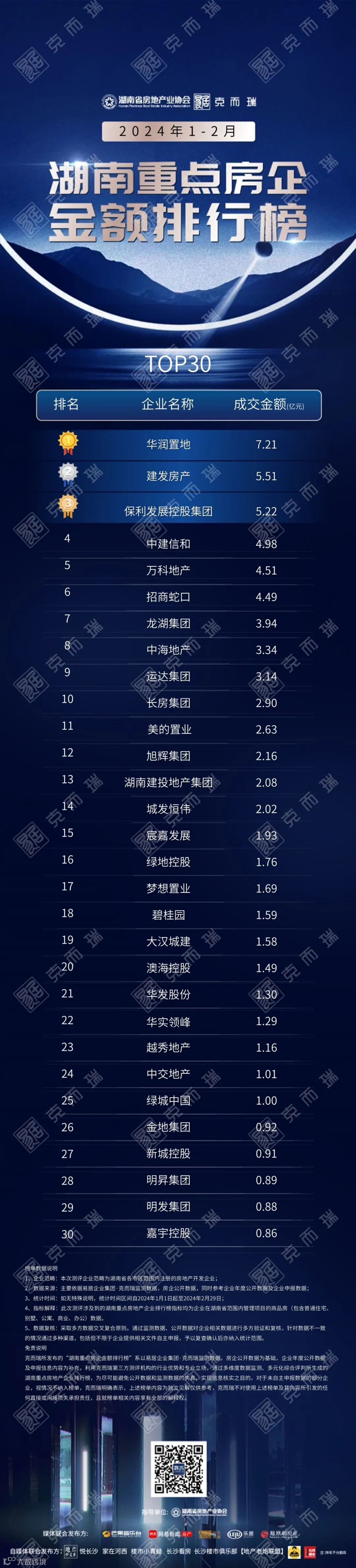 湖南重点房企成交金额排行榜