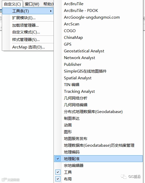 自定义→工具条→地理配准