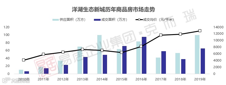 同作为岳麓区的“城市新区”,当前市场性价比突出的洋湖新城,从价格维度来看,可提升空间较大。
