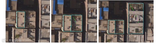 矩形建筑物提取功能对有阴影遮挡或内部异质性差别大但边缘清晰的建筑物都有较好的提取结果。左键拖动鼠标,标记线尽可能覆盖建筑物的2/3以上区域,即可提取出矩形特征的建筑物。
