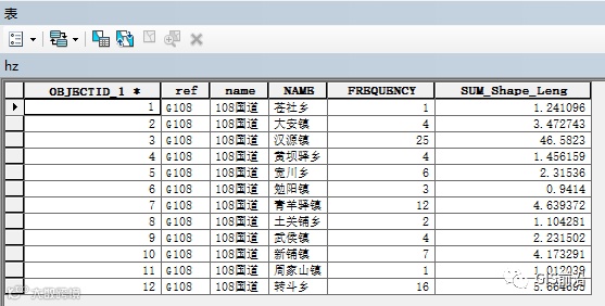 正常情况下,我们需要在路网中提取每一条公路,然后与乡镇相交,并进行汇总统计
