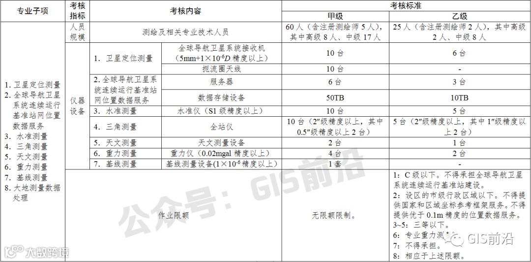 5.自本标准施行之日起满3年后,甲、乙级测绘资质单位的注册测绘师数量应当达到本标准的考核要求。更多干货关注公众号:GIS前沿,自本标准施行之日起满5年后,丙、丁级测绘资质单位也应当具备相应数量的注册测绘师,具体要求另行规定。
