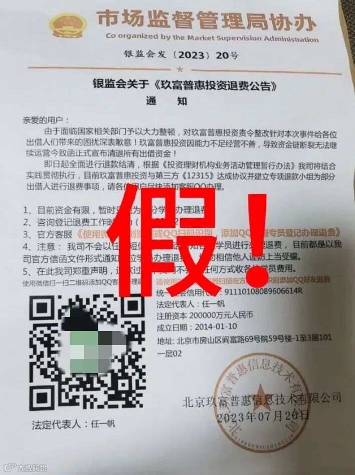 诈骗分子通过非法渠道获取公民个人信息,邮寄伪造的国家机关文书,声称某培训机构或投资平台正在集中办理退费,引导受害人扫描二维码添加客服,加入群聊。