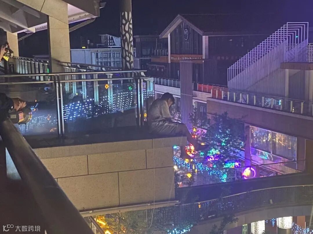 引诱男子从边缘慢慢靠向护栏