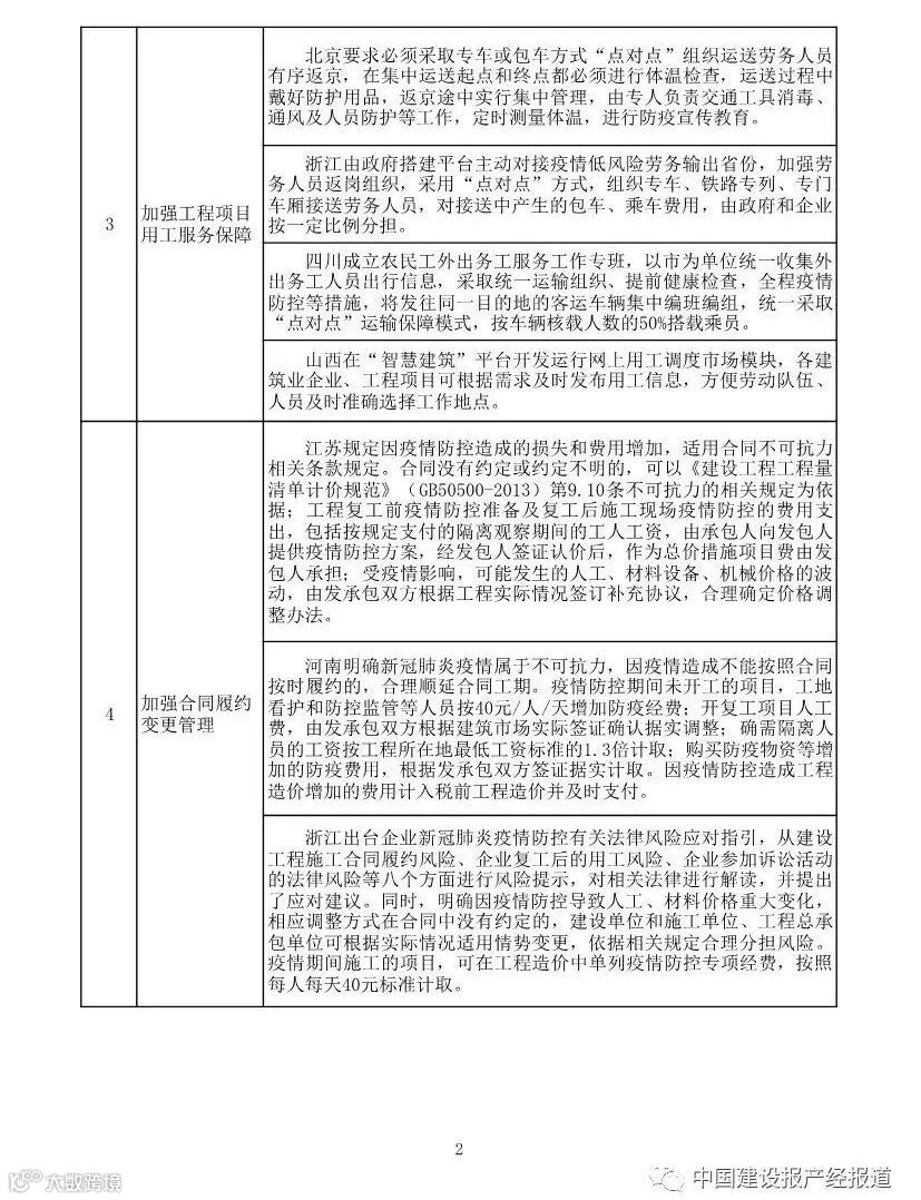 据了解,经验做法包括:分区分级推动企业开复工、落实落细疫情防控要求、加强工程项目用工服务保障、加强合同履约变更管理、全面落实建筑工人实名制管理、积极出台企业帮扶政策、加强工程质量安全监管和加快推进电子政务建设8个方面。