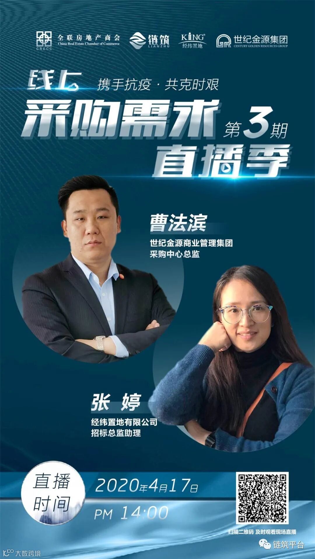 4月17日,全联房地产商会·链筑平台组织举办的“携手抗疫·共克时艰——链筑线上采购需求直播季”系列活动第3期圆满举办,3期线上直播,累计携手8家企业集团,在线实时发布260余项采购需求,涵盖房地产产业链30余个行业品类,为各产业链相关企业高效获取采购企业需求信息,采购企业精准对接更多深度战略合作伙伴,提供极大助力。