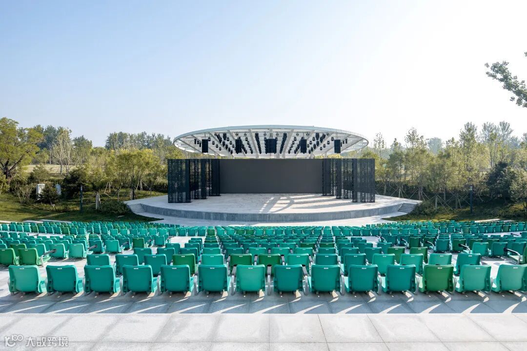 项目的立面造型和屋顶轮廓线通过金属折板幕墙和透明玻璃幕墙的穿插,呈现“徐徐拉开的大幕”观感。金属折板幕墙由4300多块立体折叠铝板单元构成,创造动态多变的光影效果。立面设计充分考虑节能措施,采用高性能保温玻璃和自遮阳铝板幕墙结合,降低立面太阳辐射的热量。