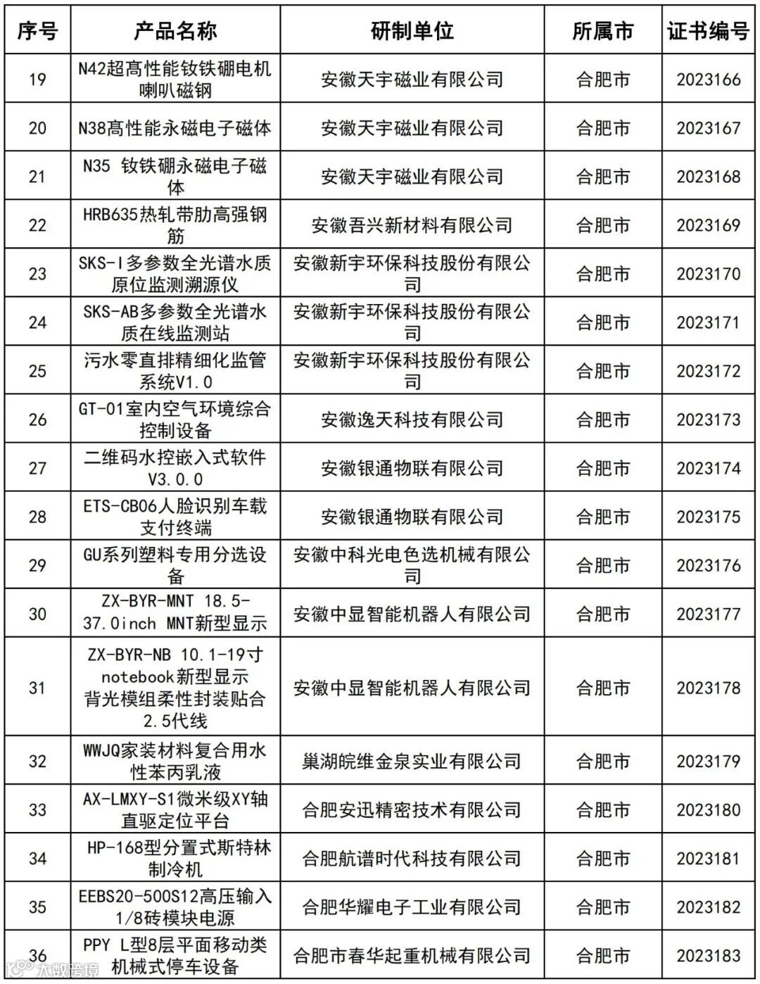 2023年安徽省新产品名单(第二批)